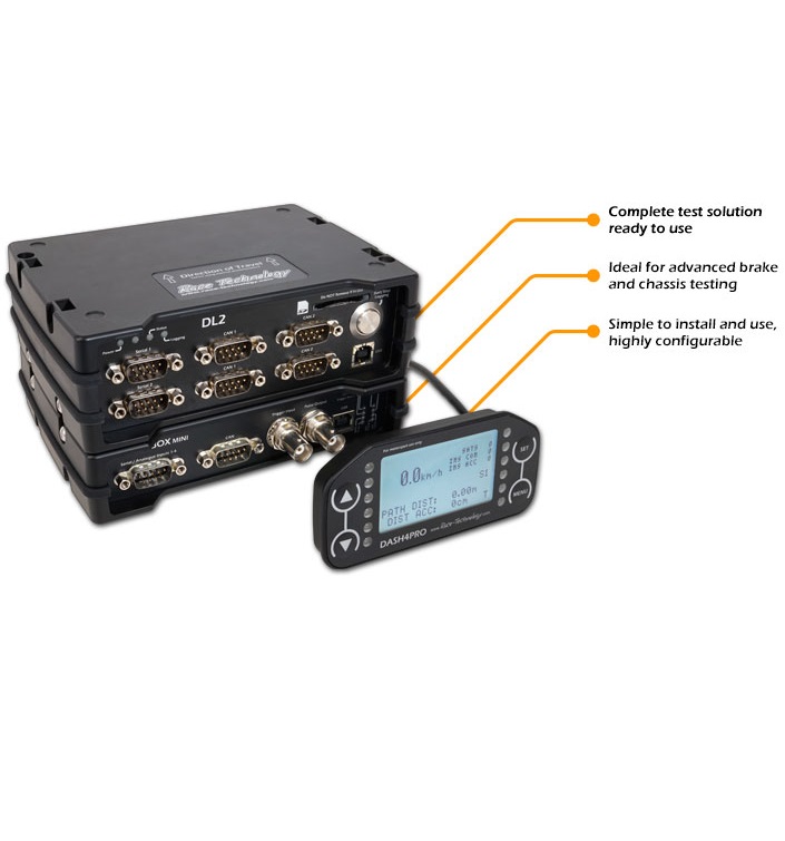 完整的测试解决方案,结合了高精度,低等级的车辆速度测量Speedbox mini或者Speedbox-ins具有新的数据记录能力DL2数据记录仪。这dash4pro连接到任何一个单元,并将显示两个来自两个单元的参数速度箱和DL2。