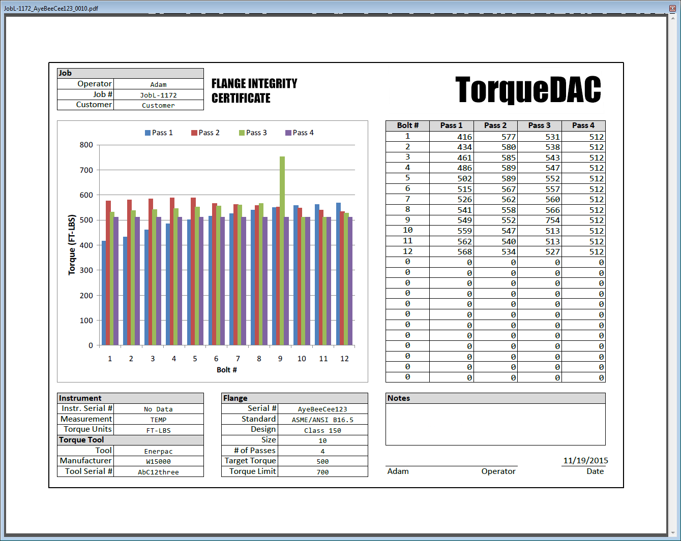 法兰指示器提供一步一步的工艺指导,显示所选螺栓,峰值扭矩,法兰设计,螺栓顺序,通道数和状态。报告很容易为每个法兰或工作过程的可追溯性,责任和完整性创建。